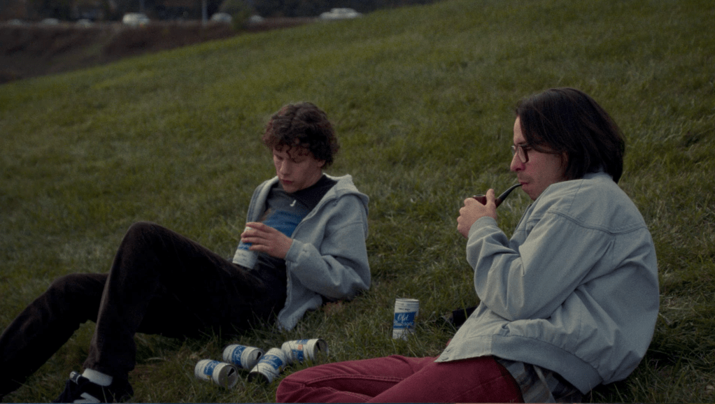 It’s around this point in the story when a poignant little scene occurs with James, Joel, and Frigo. James and Joel are sitting on the side of a hill, drinking beer and feeling sorry for themselves. Frigo darts around them lighting fireworks, being the general menace he’s been throughout the entire movie. James sulks over not having a place to stay while attending Columbia. Sharing his usual, twisted form of miserable solidarity, Joel adds: