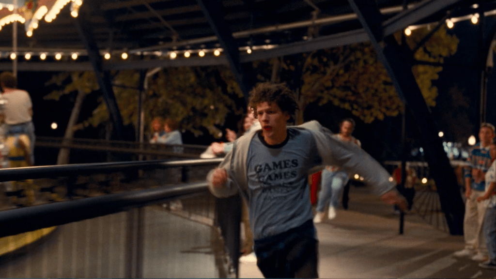 Not to be confused with the jungle-themed area at Disneyland and Magic Kingdom, Adventureland is set against the backdrop of 1987 Pittsburgh, months before the infamous stock market crash known as Black Monday. (Or Tuesday, depending on what part of the world you’re in.) It stars Jesse Eisenberg in another one of his quintessential roles as a neurotic, possibly undiagnosed autistic confused by the unwritten “rules of cool” around him. (I mean, same.) Specifically, he plays James Brennan, a recent Oberlin graduate with lofty plans to spend the summer in Europe before attending Columbia for grad school. But when his father gets demoted at work, James’ dreams of traipsing around the Old World are derailed. The financial strain pushes him to take a job working the game booths at a local amusement park called – you guessed it – Adventureland.